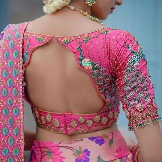 New Latest Peacock Thread Work Designer Blouse Lotus Pink Color