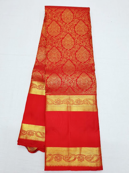 New Mango and Flower Design Kanchi Silk Saree Bridal Collection Full Jari Work Chilli Red Color