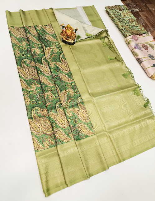 New Mango Design High Fancy Kanjivaram Silk Saree Mix Green Color w/ Blouse