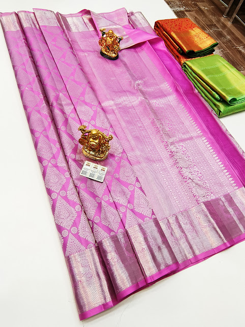 New Silver Zari Design Kanjivaram Pure Wedding Silk Saree Rose Color w/ Blouse