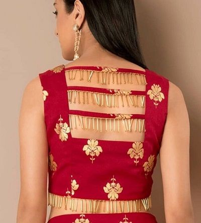 - Color / Design – Red Color Back Neck Thread Work Design