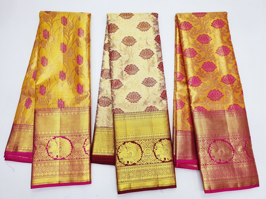 Whats App for Latest Sarees & DesignsSpecification: New Trendy Design Kanchi pure silk saree full tissue silk saree bridal collection koravai design (Butter Yellow / Yellow / Off White)
