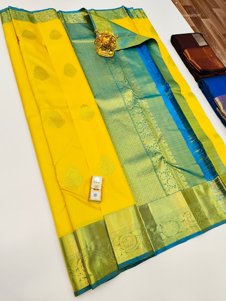 New Unique Pure Kanjivaram Fancy Silk Saree Lemon Yellow w/ Blouse