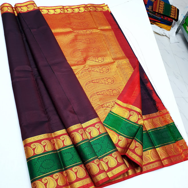 Whats App for Latest Sarees & DesignsSpecification: Mango Design Kanchipuram 100% Pure Silk Samunthirika Pattu Designer Saree Low Budget ( Hot Pink / Dark Brown / Brown / Berry Red)