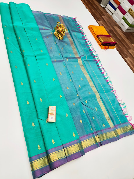 New Design Pure Soft Silks Saree Teal Green Color w/ Blouse