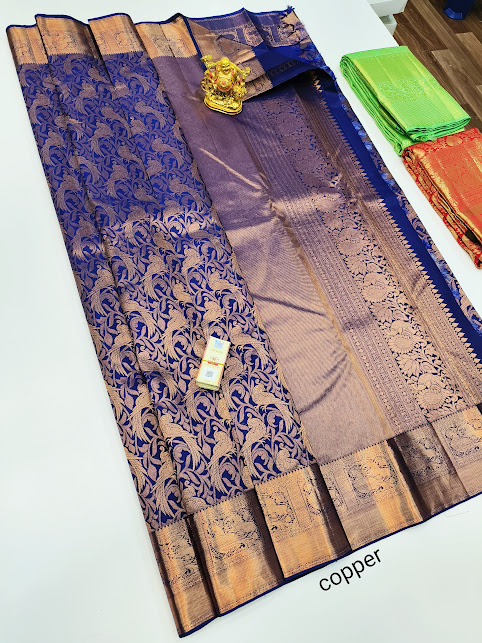 Parrot Design Kanjivaram Pure Wedding Silk Saree Ink Blue Color w/ Blouse