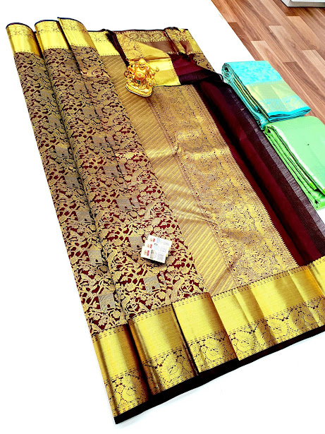 Peacock and Parrot Design Kanjivaram Pure Bridal Silk Sarees Brown Color