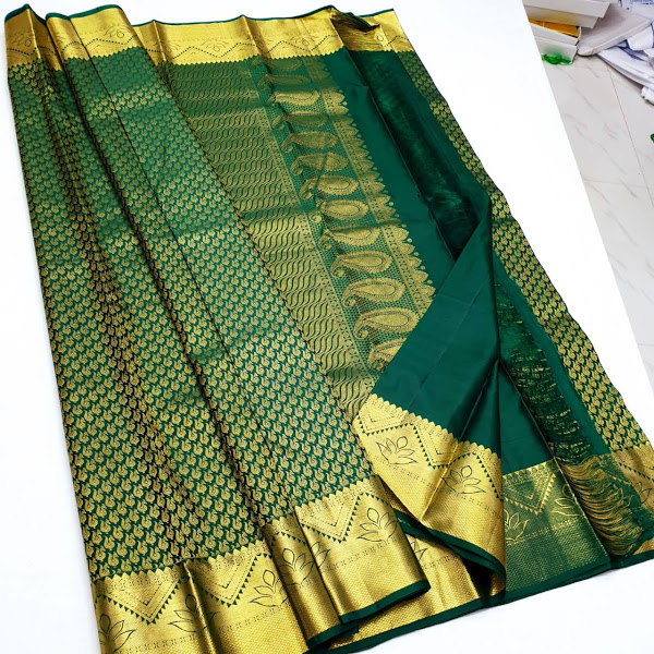 Whats App for Latest Sarees & DesignsSpecification: Peacock Design Thick Border Kanchi Bridal Collection Pattu Silk Sarees (Dark Green / Magenta / Pink)