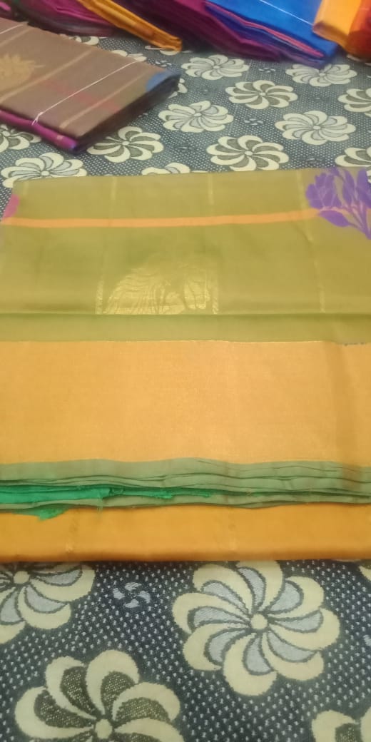 Pochampally Sarees Highball Green w/ Casablanca Orange Color