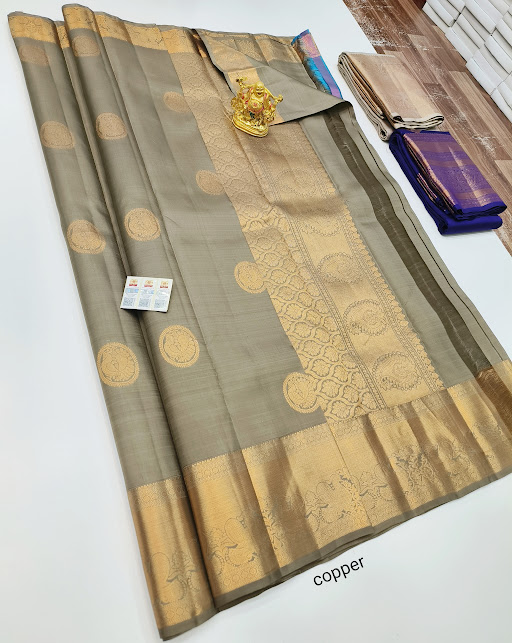 Pure Kanjivaram Fancy Silk Saree Cement Color w/ Blouse