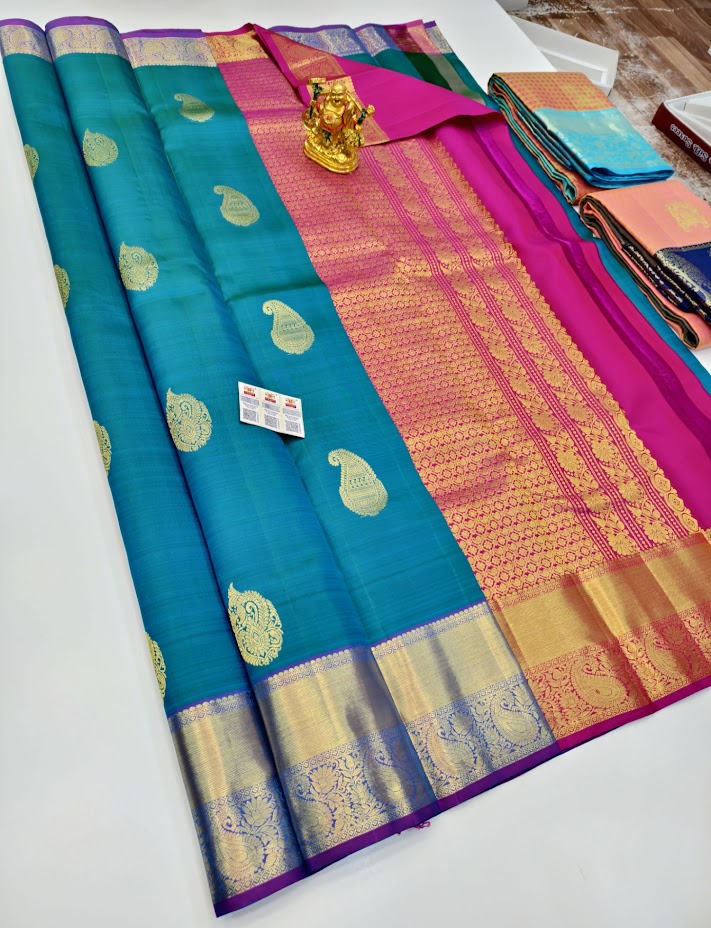 Pure Kanjivaram Fancy Silk Saree Copper Blue Color w/ Blouse
