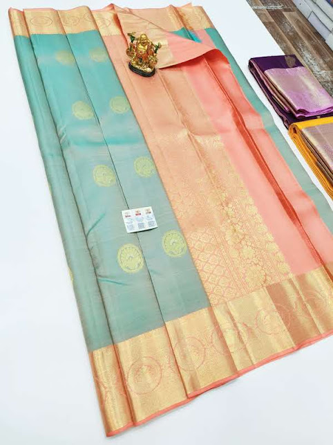 Pure Kanjivaram Fancy Silk Saree Double Shade Color w/ Blouse