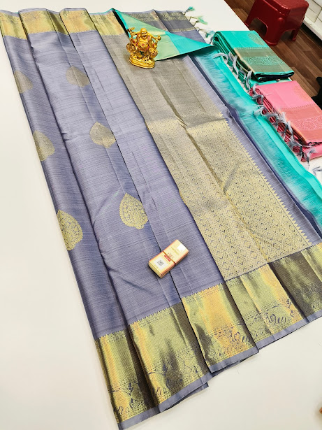 Pure Kanjivaram Fancy Silk Saree Gray Color w/ Blouse