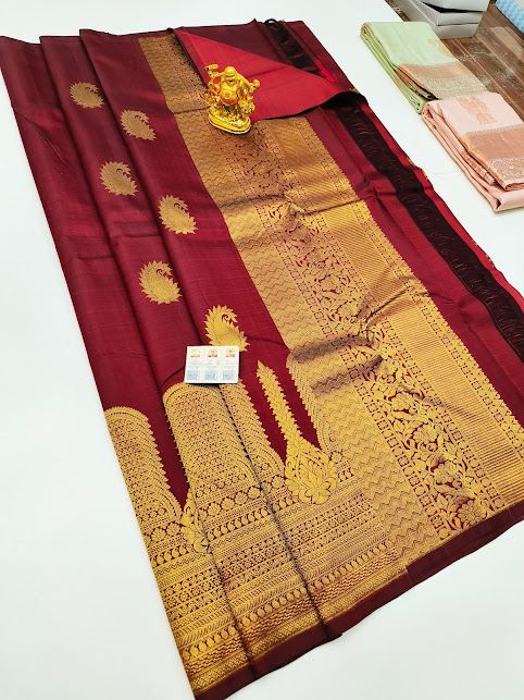 Pure Kanjivaram Fancy Silk Saree Kumkum Red Color w/ Blouse