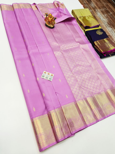 Pure Kanjivaram Fancy Silk Saree Lavender Color w/ Blouse