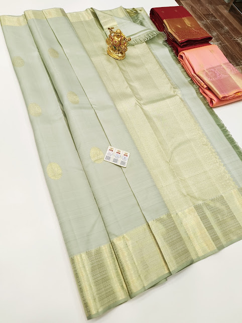 Pure Kanjivaram Fancy Silk Saree Light Pista Green Color w/ Blouse