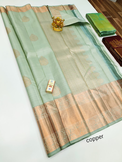 Pure Kanjivaram Fancy Silk Saree Light Pista Green Color w/ Blouse