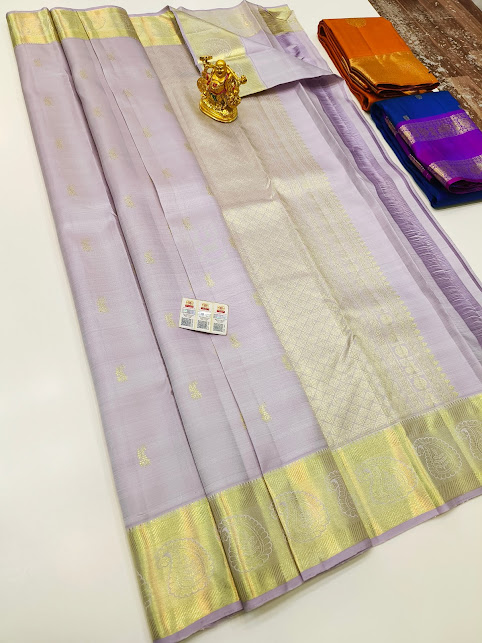 Pure Kanjivaram Fancy Silk Saree Light Violet Color w/ Blouse