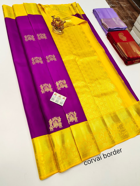Pure Kanjivaram Fancy Silk Saree Magenta Color w/ Blouse