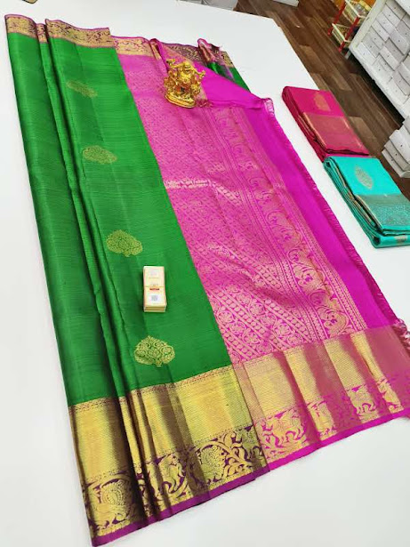 Pure Kanjivaram Fancy Silk Saree Parrot Green Color w/ Blouse