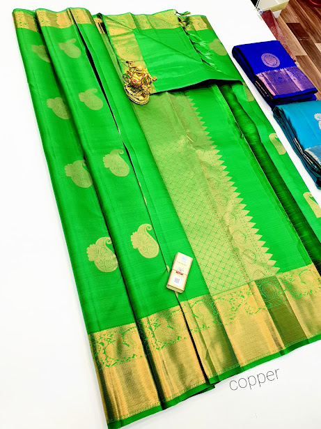 Pure Kanjivaram Fancy Silk Saree Parrot Green Color w/ Blouse