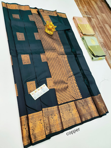 Pure Kanjivaram Fancy Silk Saree Peacock Color w/ Blouse