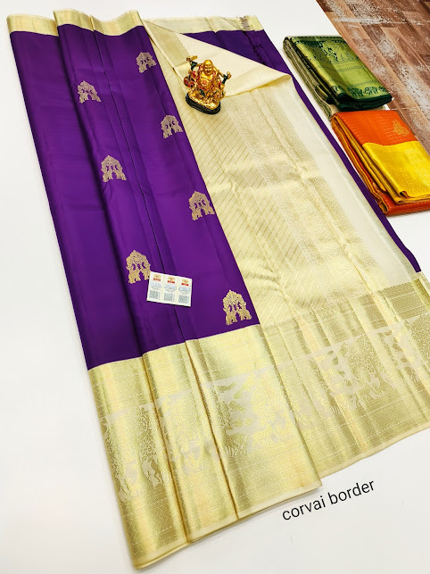 Pure Kanjivaram Fancy Silk Saree Purple Color w/ Blouse