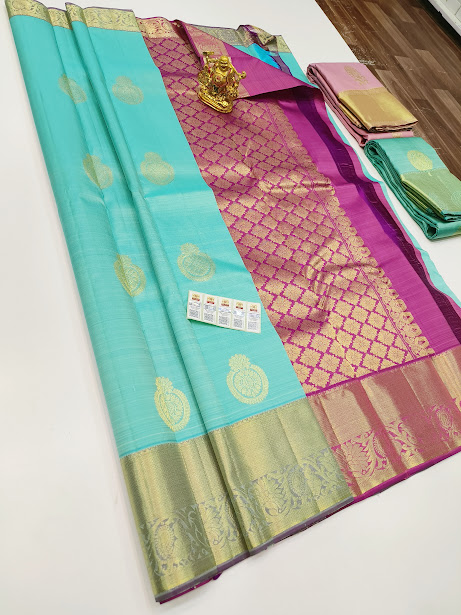 Pure Kanjivaram Fancy Silk Saree Rama Blue Color w/ Blouse
