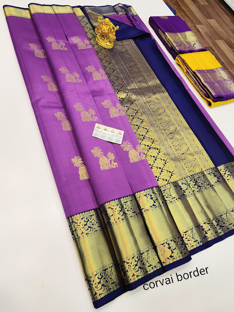 Pure Kanjivaram fancy Silk Saree Violet Color w/ Blouse