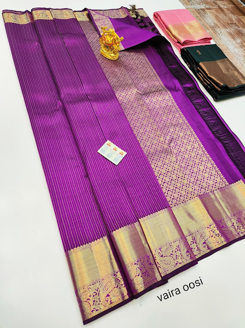 Pure Kanjivaram Fancy Silk Saree Violet Color w/ Blouse