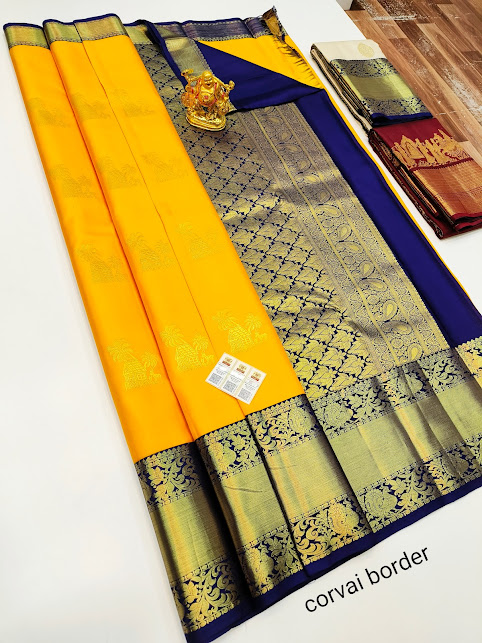 Pure Kanjivaram Fancy Silk Saree Yellow Color w/ Blouse