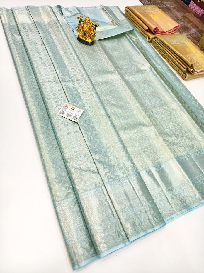 Pure Kanjivaram Silk Saree Silver Color w/ Blouse