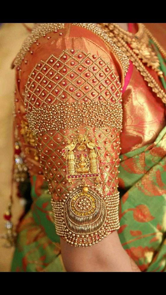 Specification: Pure Pattu Bridal Maggam Work Blouse Full Zari – Pink Color