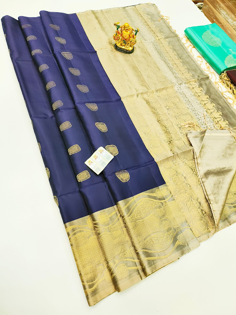 Pure Soft Silk Saree Dark Blue Color w/ Blouse