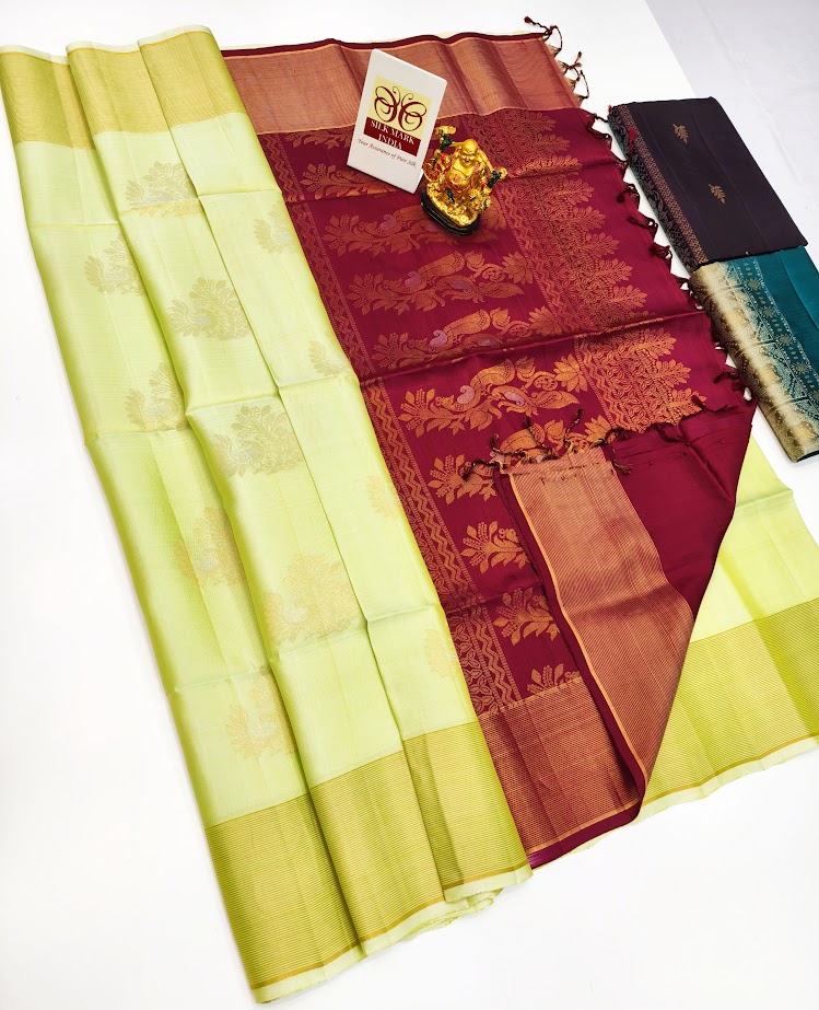 Pure Soft Silk Saree Lemon Yellow Color w/ Blouse