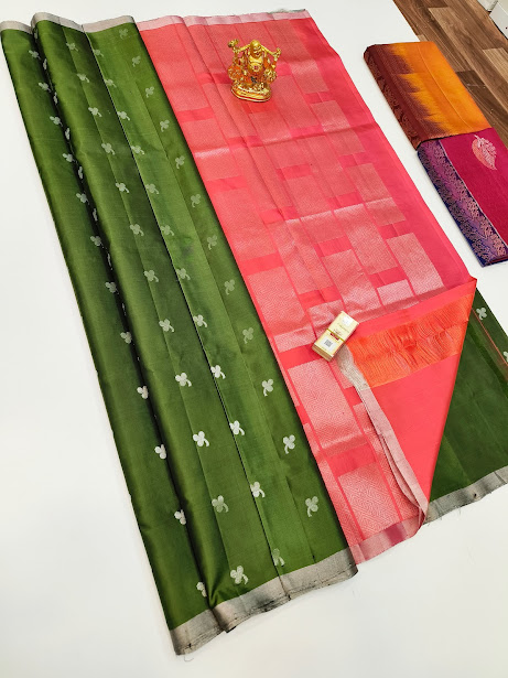 Pure Soft Silk Saree Olive Green Color