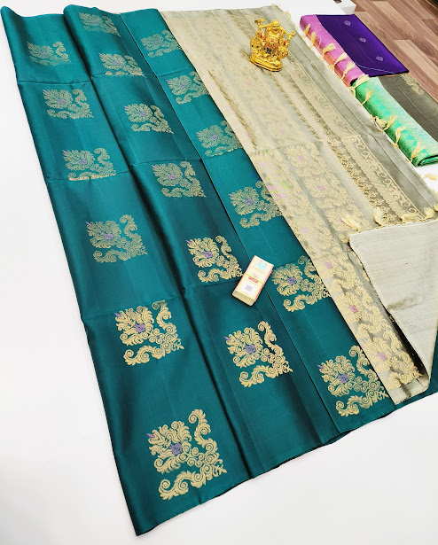 Pure Soft Silk Saree Peacock Blue Color w/ Blouse