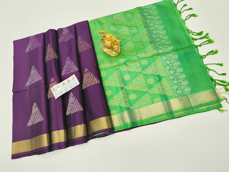 Pure Soft Silk Saree Purple and Green Color w/ Blouse