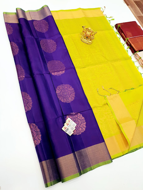 Pure Soft Silks Saree Violet w/ Lemon Yellow Color with Blouse