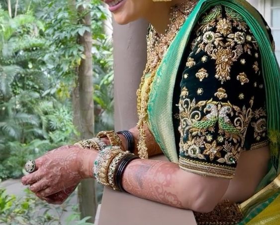 • Color / Design – Dark Green Color Peacock Embroidered Work Design