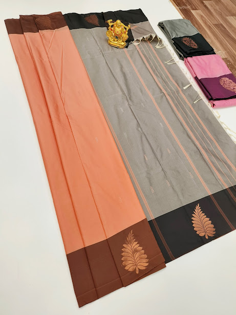 Semi Soft Silk Saree light Weight Light Orange Color w/ Blouse