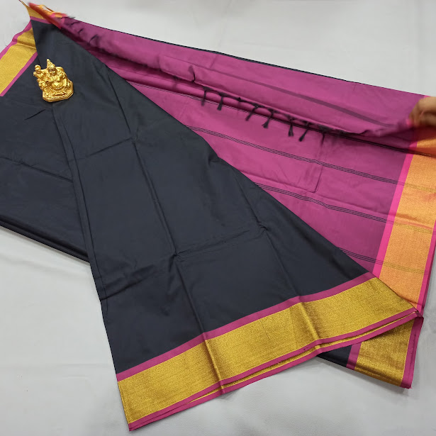Semi Softsilk Sarees Light Weight Dark Brown w/ PinkColor