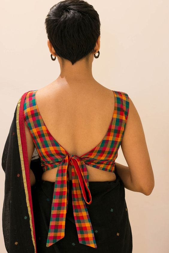 Simple Bow Work Back Neck Party Blouse Multi Color