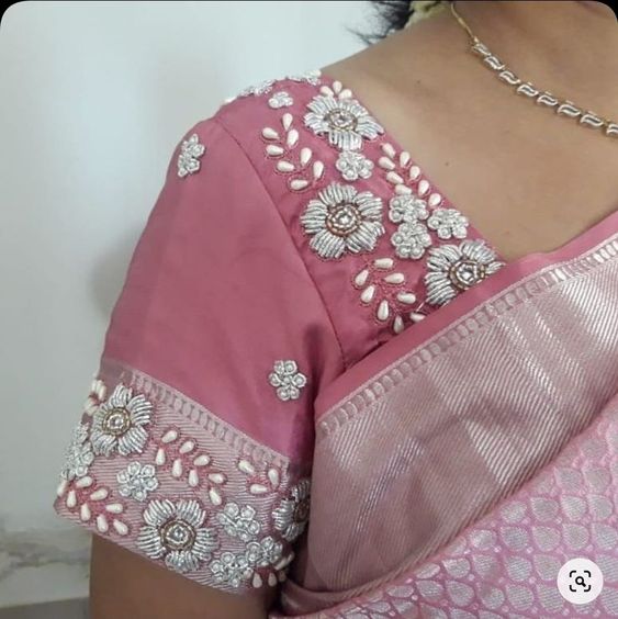 - Color / Design – Rose Milk Color Flower Thread Work Design