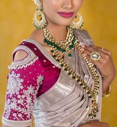 - Color / Design – Magenta Color Embroidery and Pearls & Stone Work Design