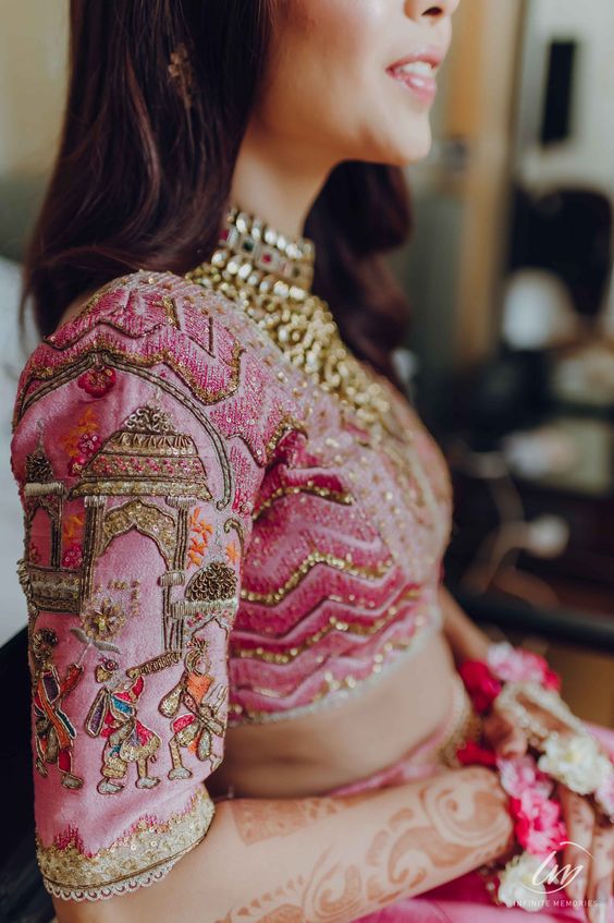 Specification: Stylish Modern Embroidery Work Bridal Blouse Rose Milk Color