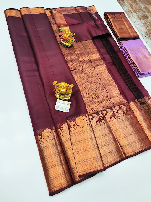 Sunflower and Peacock Design Pure Kanjivaram Fancy Silk Saree Kumkum Red Color w/ Blouse