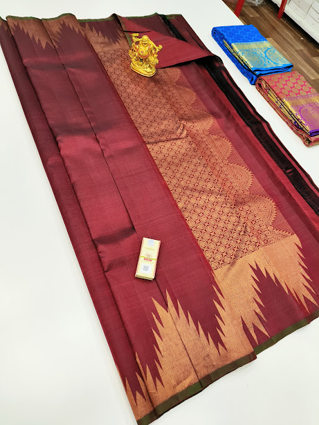 Temple Border Pure Kanjivaram Fancy Silk Saree Apple Red Color w/ Blouse