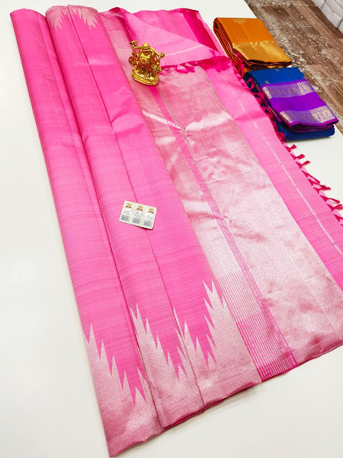 Temple Design Pure Kanjivaram Fancy Silk Saree Rose Milk Color w/ Blouse