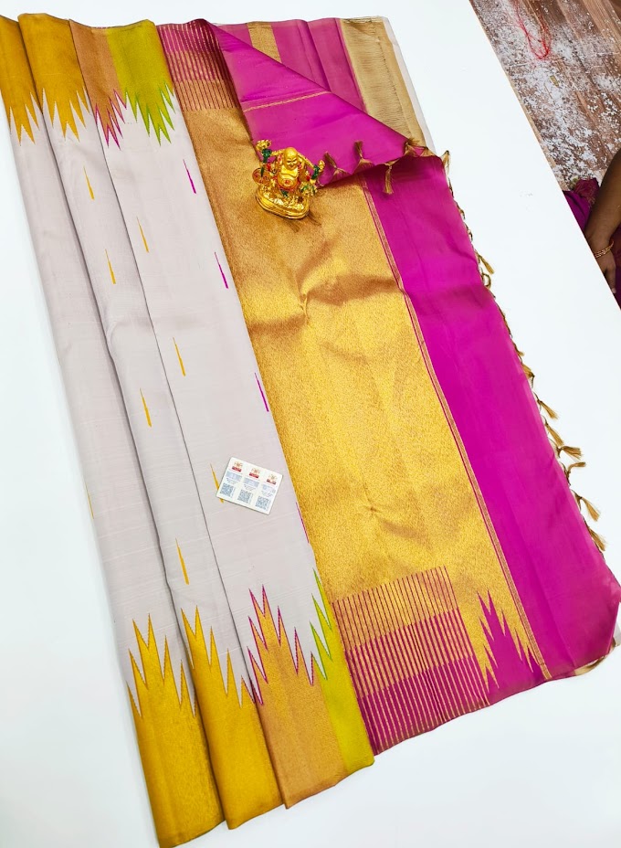 Temple Design Pure Kanjivaram Silk Saree Light Levander Color w/ Blouse
